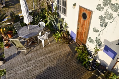 一日を通して陽のあたるデッキでは、朝、昼、夜の 光りの移り変わりを充分に撮影出来ます。