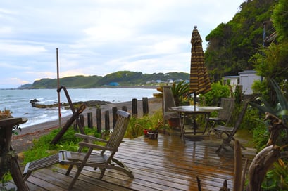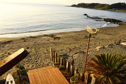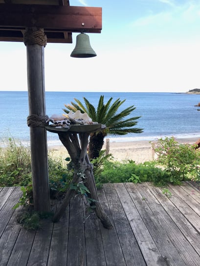 デッキを降りるとそのままビーチにつながり、ほんの数歩で波打ち際です。